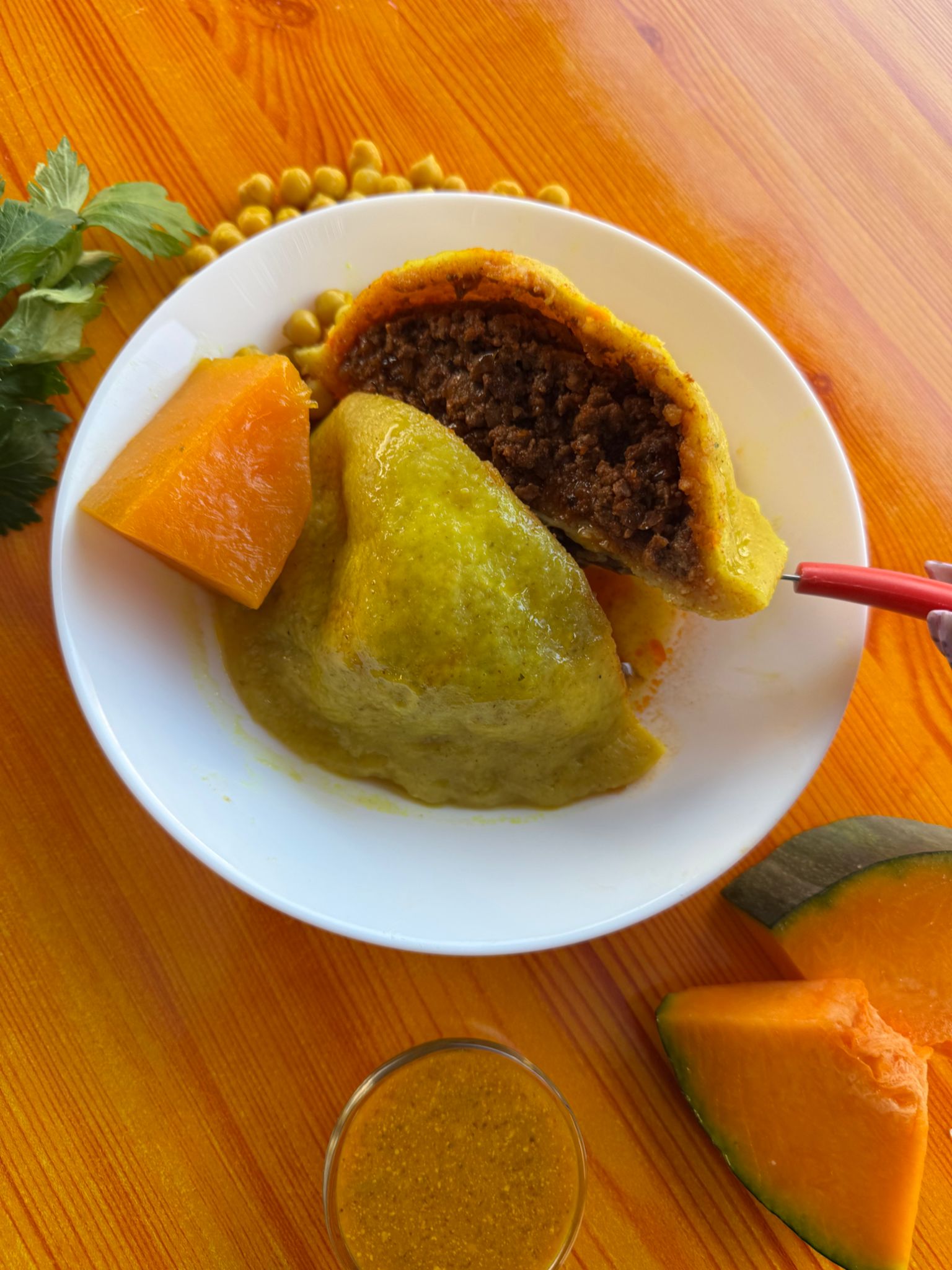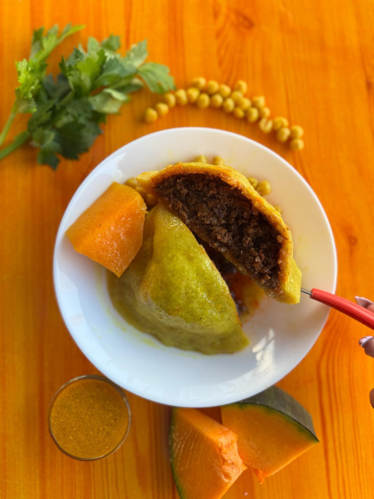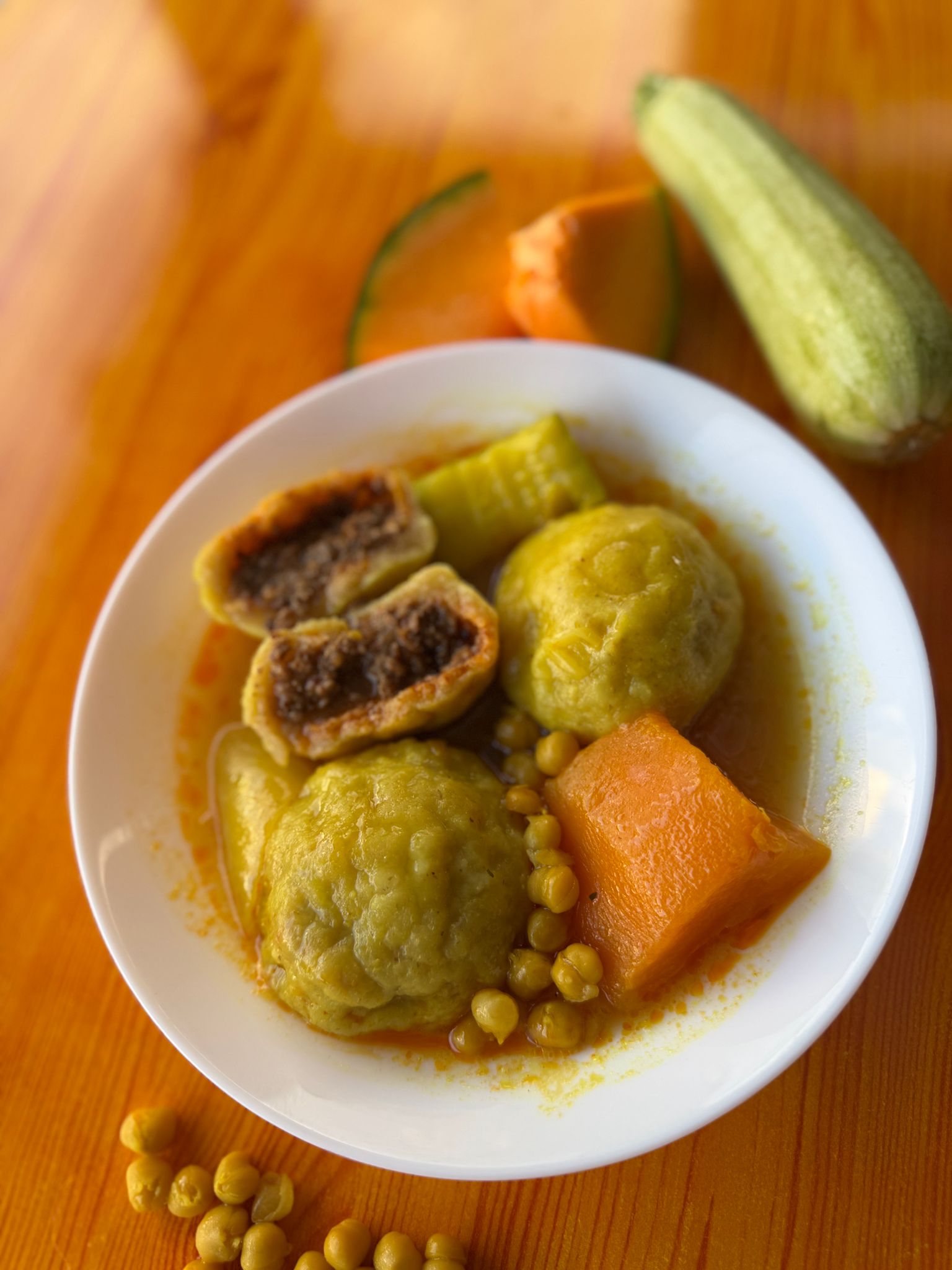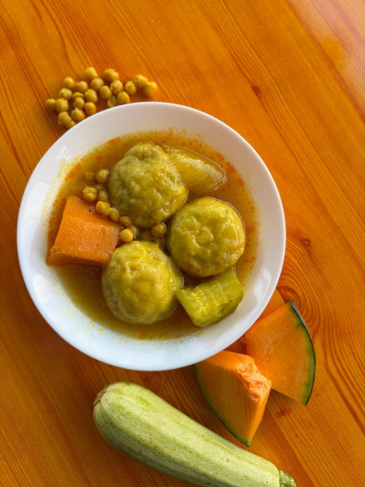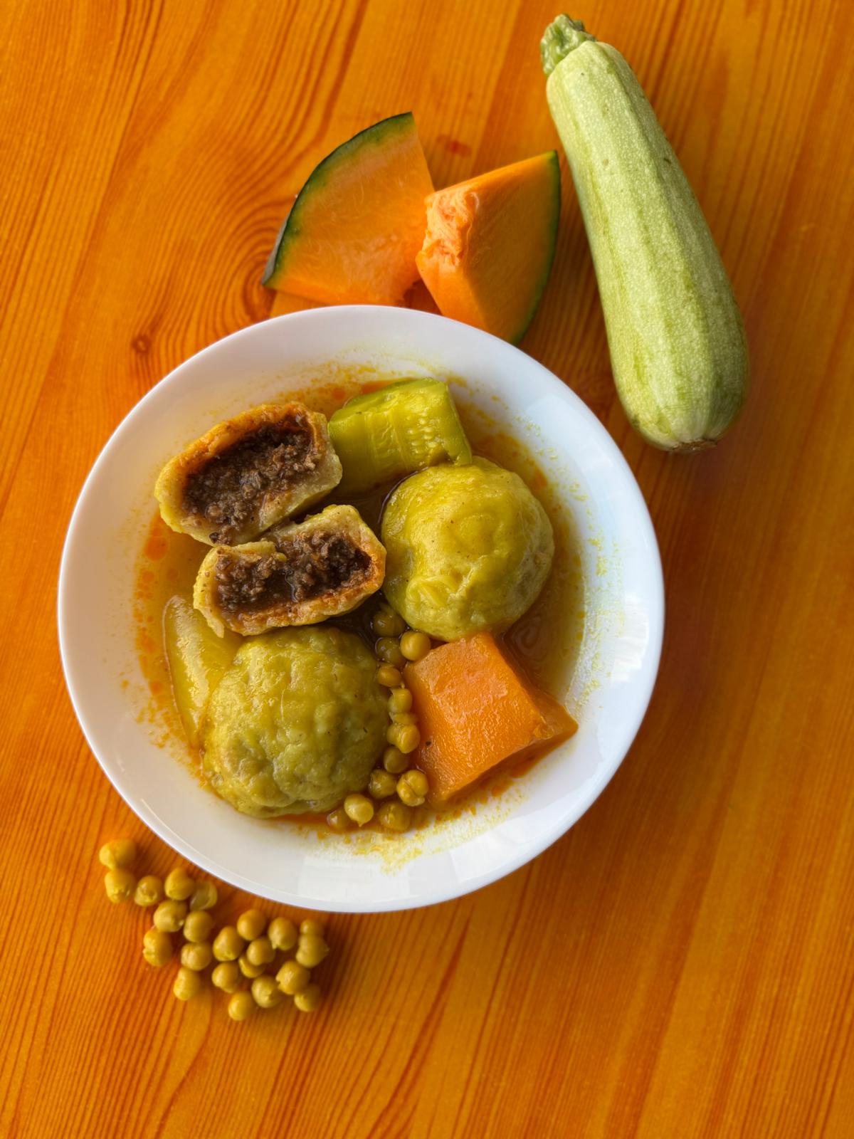 המוגשת במרק דלעת וקישואים,